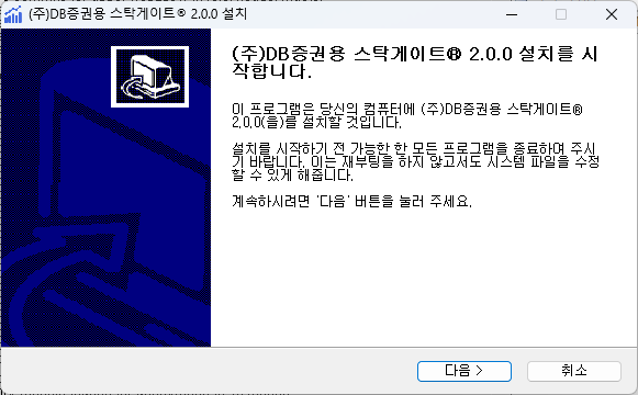 ㈜STOCK-GATE 2.0은 ㈜DB증권용으로 첫 개발되었으며, 설치방법은 매우 간단합니다.
